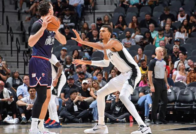 由于只是季前赛,下半场马刺直接换上替补阵容,文班亚马不再出战,这意味着文班提前打卡下班。