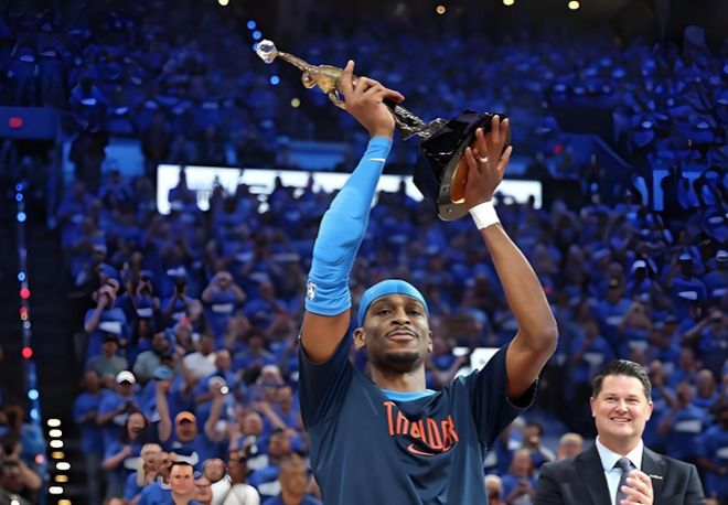 得益于攻防两端的顶级表现,各项高阶数据名列前茅,再搭配上历史级别的球队战绩和胜场差距,足以支撑亚历山大从约基奇手中抢下这个最大的个人奖项。