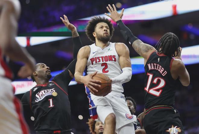 活塞的比赛很有打击感,对76人那场很能反应这个修辞。一方面,活塞团队防守热情,前赴后继地去逮风驰电掣的马克西,攻的、防的都尽兴。另一方面,活塞确实空间不咋地,攻筐有头铁嫌疑,所以反向也被对面打击。